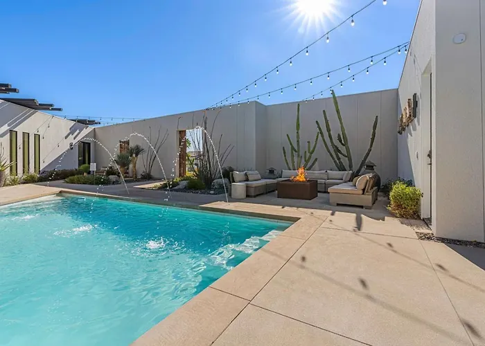Cette villa Spectacular Resort-Style Oasis By Rather Be Properties Palm Springs offre un accès facile à des sites touristiques tels que la faille de San Andreas à 5 minutes de marche. Proposant un bain chaud, cette villa de 5 chambres est à moins de 3 km de Palm Springs Desert Museum.